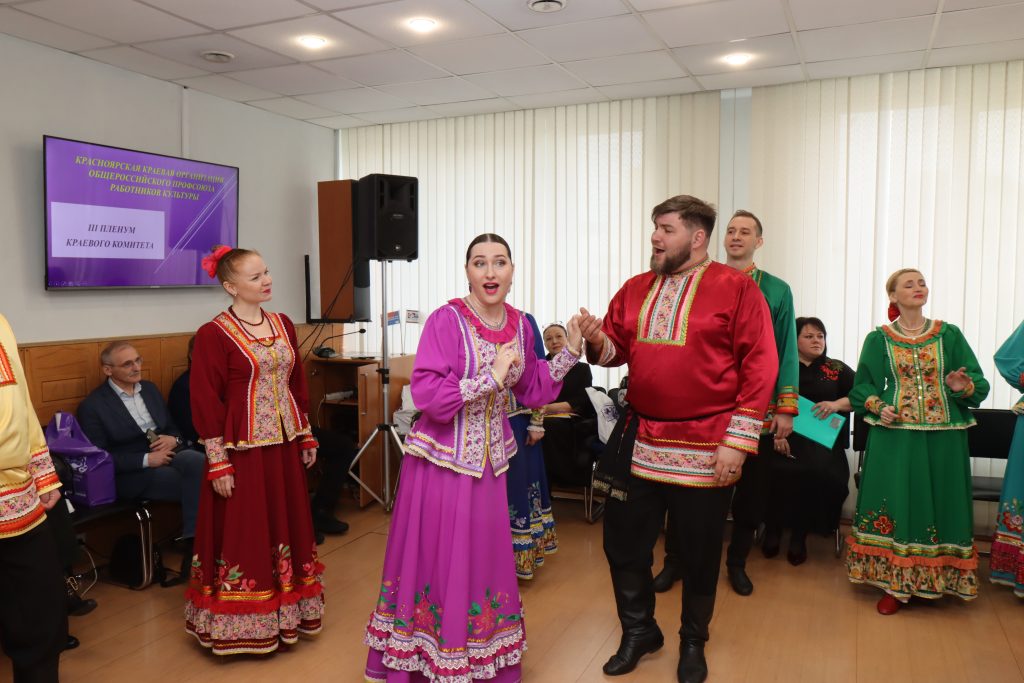 Мероприятие открылось выступлением Красноярского государственного ансамбля «Краса». С приветственным словом к краевому комитету и приглашенным обратился Председатель Федерации профсоюзов Красноярского края О.Х. Исянов. Приветственное видеообращение направил Министр культуры Красноярского края А.В. Зинов. Доклад о стратегических ориентирах отрасли кульутры представила М.Д. Суркова, начальник отдела стратегического развития Министерства культуры края.